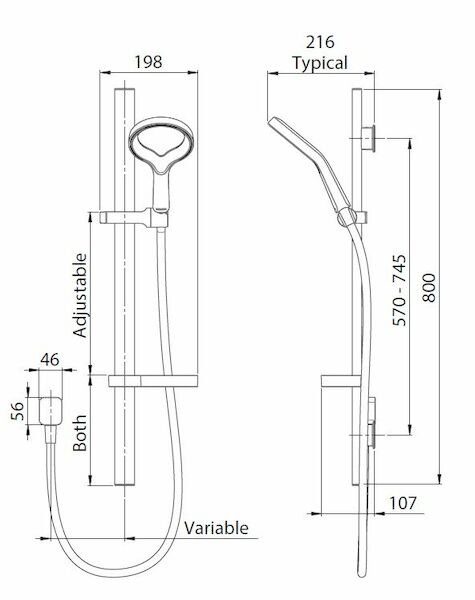 Stylish 800mm rail with adjustable pillars to allow easy retro-fit