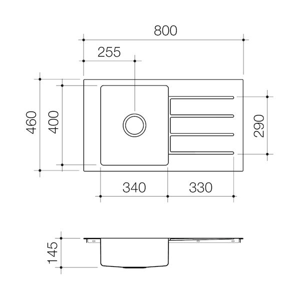 • Specifically designed draining board with deep etched grooves to allow water to drain easily
