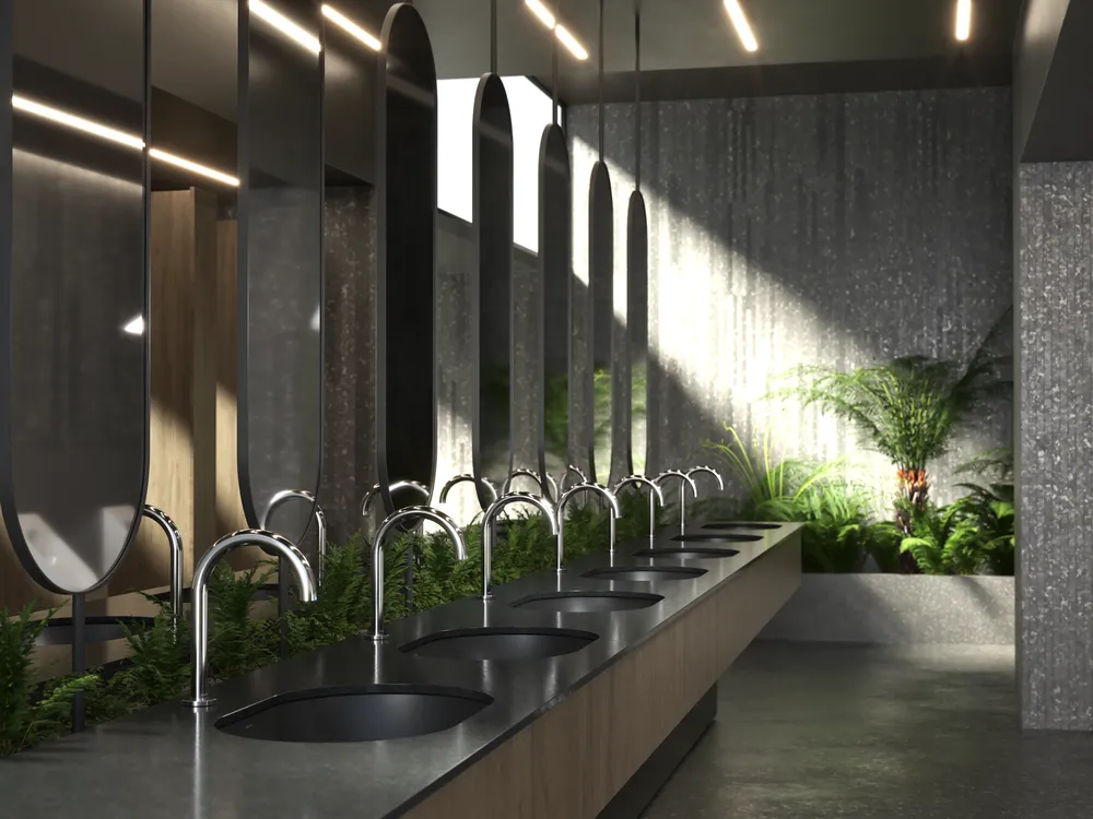 Designing bathrooms for government and defense facilities requires a focus on security, durability, and accessibility. These spaces must be built to withstand heavy use and potential emergencies, using robust materials that are easy to maintain and sanitize. Security features, such as tamper-proof fixtures are essential to ensure safety. Accessibility is also a priority, with designs that comply with AS1428.1 standards providing features like adjustable fixtures, easy-to-reach controls, supportive grab rails, and adequate space for manoeuvrability. Additionally, our smart taps and toilets which have energy-efficient fixtures and water-saving technologies can help reduce operational costs and support sustainability goals. Overall, the design should create a secure, functional, and comfortable environment for all users.